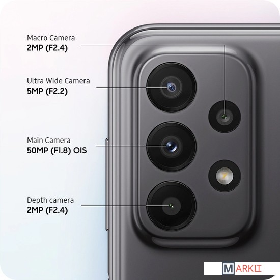 50 Мп, f/1.8, оптическая стабилизация, широкоугольный5 Мп, f/2.2, 123˚, 1/5", 1.12мкм, сверхширокоугольный2 Мп, f/2.4, макро2 Мп, f/2.4, датчик глубины |