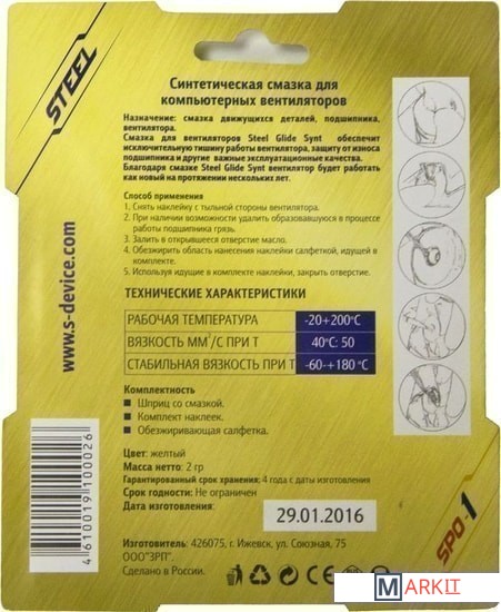 Markit » Системы охлаждения » Смазка для вентиляторов Steel SPO-1 (2 г)