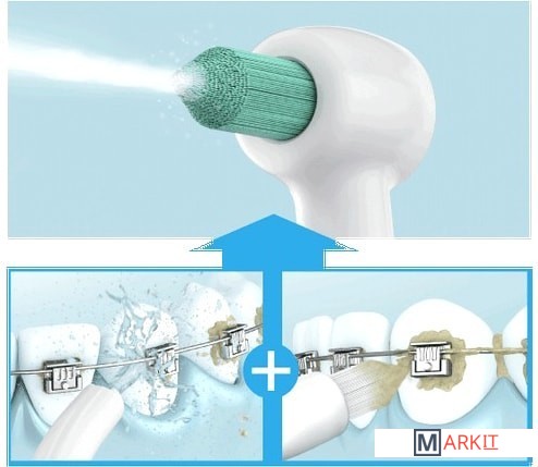 Сменная насадка Panasonic WEW0984W303 – более простой и быстрый уход за полостью рта во время ортодонтического лечения.Чистка 2-в-1 с подачей струи воды и специальной щеткой! Наконечник разработан для оптимизации водного потока, сохраняя при этом преимущества плотной щетины, удаляющей налет вокруг стоматологических устройств. Он оснащен монопучковой щеткой, популярной у пациентов с ортодонтическими и ортопедическими конструкциями, несъемными конструкциями (мосты, брекеты, протезы и т.д.). Благодаря своей конусообразной форме WEW0984W303 без труда достигает узких промежутков между брекетами и зубами, около колец и дуги, обеспечивая полную очистку. Струя воды вымывает остатки пищи с помощью мощного точечного выброса.