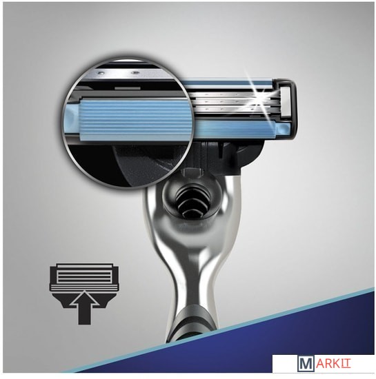 Кассеты Gillette Mach3 - это бритвенная система, оснащенная тремя лезвиями с покрытием DLC и усовершенствованной полоской-индикатором, которая обладает одновременно смазывающим эффектом и сигнализатором о смене картриджа для достижения оптимального эффекта.Три лезвия размещены на разных уровнях, что обеспечивает максимально чистое бритье всего одним движением и снижает тем самым раздражение, ведь необходимости брить снова становится меньше.