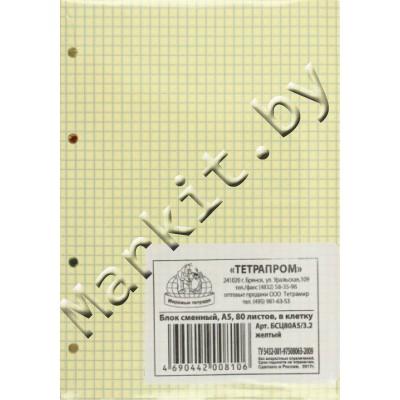 Markit » Канцтовары » Бумажная продукция » Тетради на кольцах со сменными блоками » Сменный блок для тетради на кольцах «ТетраПром», 80 л., клетка, желтый