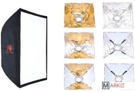 Софтбокс для импульсных источников освещения. Размер 75х75 см, отражающая поверхность белый/серебро/золото, байонет FEDE (байонетное кольцо сменное).
