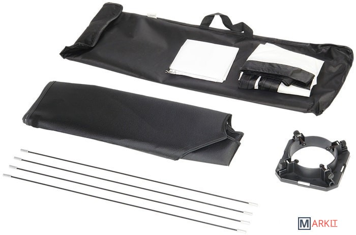 | Комплектация | - Софтбокс SSA-SBU 7575;- Кольцо-адаптер SS;- Спицы - 4 шт;- Рассеиватель - 2 шт (внутренний и внешний);- Чехол. |