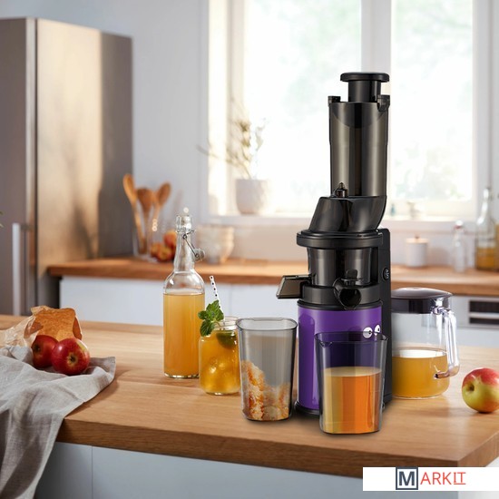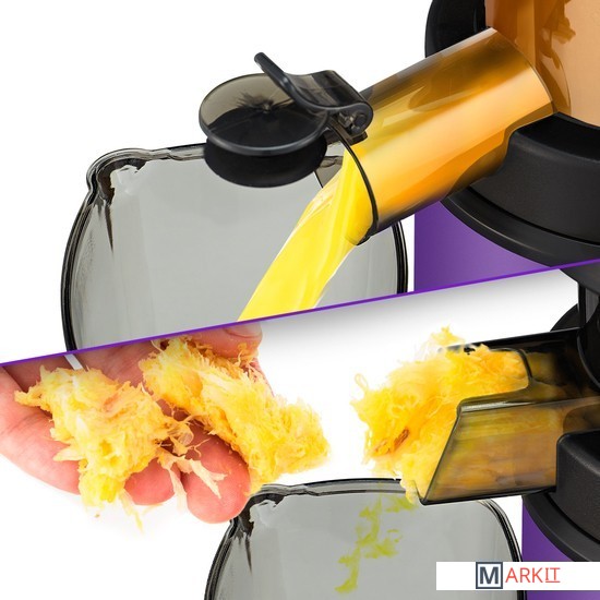 Шнековая соковыжималка Kitfort КТ-1129 позволяет бережно отжимать максимально возможное количество сока из фруктов, овощей и зелени, сохраняя все полезные вещества: витамины, аминокислоты и минералы.58 оборотов в минуту - оптимальная скорость вращения шнека для наиболее холодного отжима. Во время работы устройства сок не нагревается, не окисляется и не пенится. А жмых при такой переработке остаётся практически сухой.