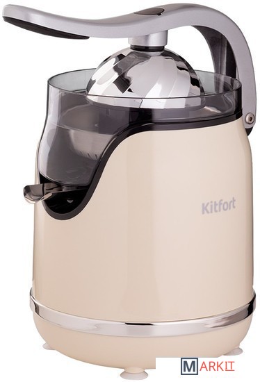 Самый сок!Соковыжималка Kitfort KT-1131 предназначена для отжима сока из цитрусовых плодов малого и среднего размера. Прорезиненные ножки не дадут прибору скользить по столу во время отжимания сока.Ни капли мимо!В соковыжималке КТ-1131 предусмотрена противокапельная система. После процесса отжима, капли сока еще могут стекать на стол. Чтобы этого избежать, на носике для выхода сока есть прорезиненная область, которая обеспечивает герметичное закрытие.Простой принцип работыЧтобы привести соковыжималку в действие, нужно нажать на ручку. Ручка имеет резиновое покрытие в нижней части. Подача сока осуществляется прямо в ваш бокал. Время отжима составляет 15 секунд. Из одного апельсина получается примерно 100 г сока.Маленький и большой конус для цитрусовыхВ комплекте с соковыжималкой идут два конуса большого и маленького размера, с помощью которых можно выжимать сок не только из апельсинов и грейпфрутов, но также из лаймов, мандаринов и других сочных цитрусовых.В ретро стилеСоковыжималка выполнена в винтажном стиле в двух цветах: бежевом и чёрном. Она обязательно украсит вашу кухню и обеспечит дополнительное удовольствие в использовании.Легко собирать, разбирать и мыть!Ручка, фильтр и носик выполнены из нержавеющей стали, остальные детали изготовлены из качественного пищевого пластика. Соковыжималку удобно мыть, все съемные части легко вынимаются.Уровень шума: 70 дБ.Длина шнура: 0.6 м.