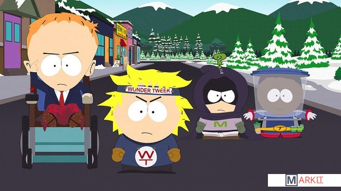 В игре South Park: The Fractured but Whole тихий горный городок Южный парк окутала тьма. На битву со злом выступают новые супергерои – команда, ведомая падальщиком, поклявшимся навести порядок на помойке городских нравов.Дети хотели просто поиграть в супергероев, но Картман вознамерился сделать Енота и его друзей известнейшим в мире брендом. Его планам желает помешать Профессор Хаос – злодей, мечтающий уничтожить суперкоманду. Героям предстоит совместными усилиями положить конец ужасу и разрухе.Создатели Южного парка Трей Паркер и Мэтт Стоун представляют South Park: The Fractured but Whole, преемницу SouthPark: Палка истины, завоевавшую 25 наград от индустрии видеоигр.Игрокам вновь придется примерить маску Новичка. Для вступления в команду Енота и его друзей понадобится создать своего супергероя, заслужить признание союзников и, используя суперспособности, спасти Южный парк. Только тогда Енот и его друзья смогут получить звание Лучшая команда супергероев во всем мире и по итогам заключить контракт на съемку фильма об их группе. В городе цветущего хаоса только Енот и друзья могут посеять мир.