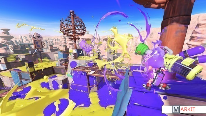 Добро пожаловать в Плюхтонию, испепеленную солнцем пустыню, где обитают закаленные в боях инклинги и осьмолинги. Горячо бьющимся сердцем этих пустынных земель является город хаоса Плюхтон.Даже в таких суровых условиях не прекращаются Бои за район! Красочные сражения происходят на новых уровнях в окрестностях города.Новые динамичные приемы помогут бойцам уклоняться от атак и покрывать большее расстояние, а новое оружие, напоминающее лук, позволит еще эффективнее плюхать врагов. Более подробная информация об игре появится чуть позднее. Релиз Splatoon 3 для Nintendo Switch запланирован на 2022 год.Бои за район 4 на 4 с новыми аренами, новыми приемами и новым оружием.