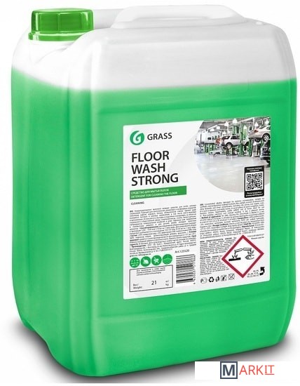 Средство для мытья полов GRASS Floor Wash Strong 21 кг (125520) - концентрированное щелочное моющее средство для особо сильных загрязнений. Подходит для синтетических, виниловых и полимерных покрытий, линолеума, кафеля, асфальта, бетона, облицовочной плитки. Удаляет даже въевшиеся бытовые и уличные загрязнения, в том числе масложировые и органические. Используется в бытовых и подсобных помещениях, на объектах социальной и общественной сферы, спорткомплексах, отелях, бизнес-центрах, гипермаркетах, коммунальном хозяйстве и дома. Идеально для применения в поломоечных машинах и для ручной мойки, обладает приятным ароматом.Состав: ≥30% очищенная вода;Способ применения:1. Ежедневная уборка: концентрат разводят в пропорции 1:200 - 1:100 или 5-10 мл/л.2. Генеральная уборка: концентрат разбавляется в соотношении 1:50 - 1:25 или 20-40 мл/л.