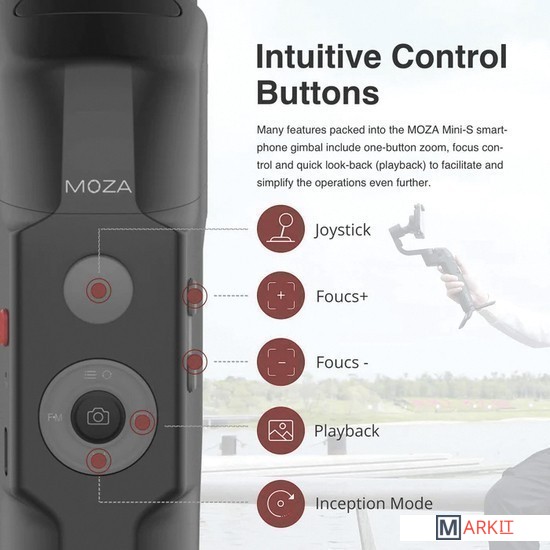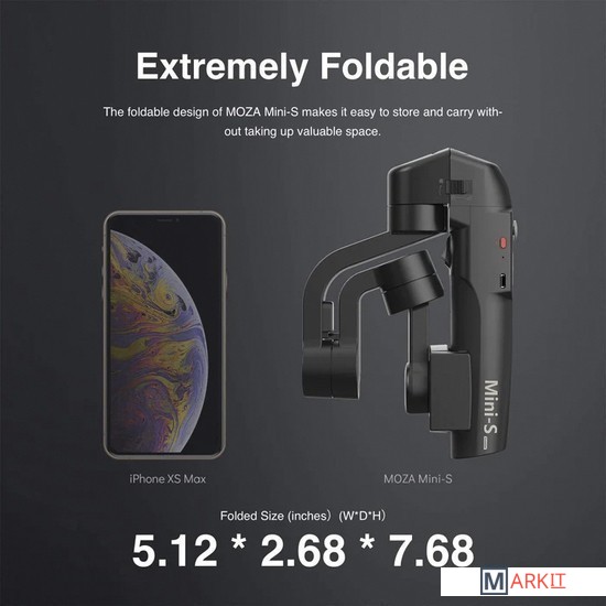 Трехосевой стабилизатор для смартфона. Его главной особенностью является складываемый дизайн, что делает этот подвес компактным и более легким в хранении, чем устройства конкурентов. Он умеет работать как с iPhone, так и с Android-смартфонами. Ширина смартфона должна лежать в пределах от 58 до 88 мм.