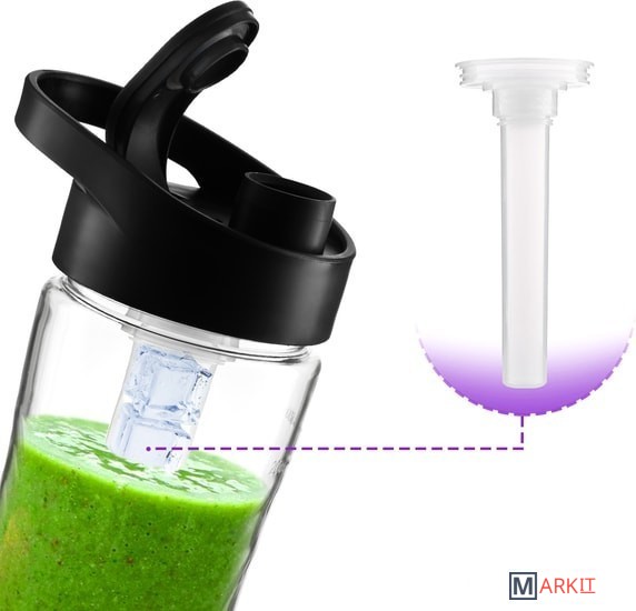 - моторный блок;- чаша блендера;- крышка чаши;- колпачок;- колба для охлаждения жидкости с пробкой;- крышка колбы для охлаждения жидкости;- блок ножей для блендера;- бутылка;- крышка бутылки;- чаша кофемолки;- блок ножей для кофемолки.
