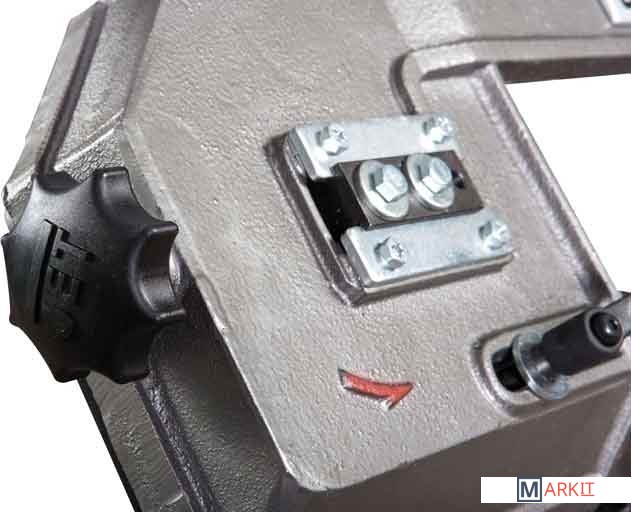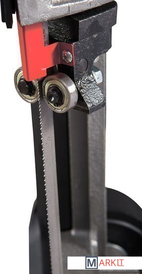 Предназначен для индивидуального применения.Закаленный и отшлифованный червяк с бронзовым червячным колесом, предназначен для длительного срока службы.Регулируемые направляющие ленточного полотна на 3-х подшипниках качения.Автоматическое отключение после сквозного распила.