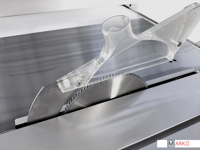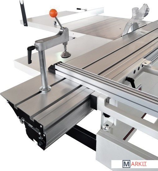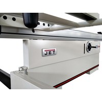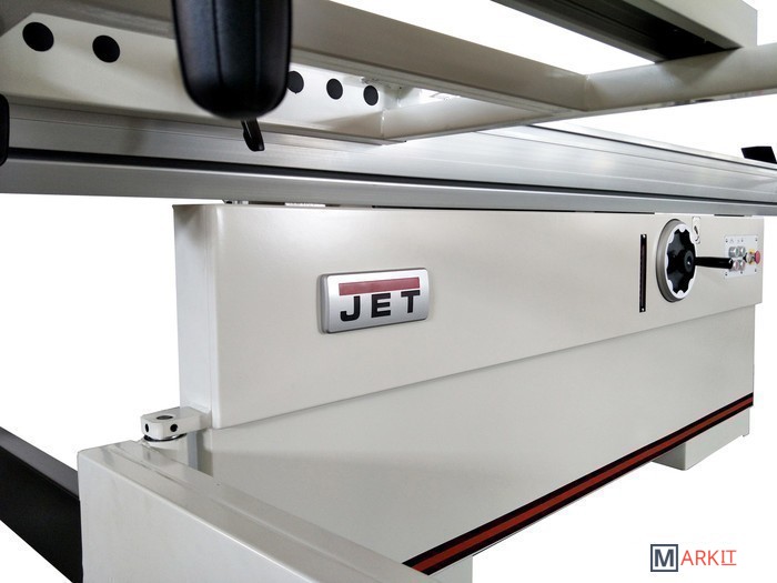 Механизм блокировки вала для облегчения замены пильного дискаВспомогательный электродвигатель для привода подрезного дискаПильный модуль из чугунного литьяРегулировка положения расклинивающего ножаРегулировка положения подрезного диска маховикамиРегулировка наклона пильного дискаРегулировка глубины пропилаРабочий стол из чугунного литьяСъемный расширитель рабочего стола из стального листа справаСъемный удлинитель рабочего стола из стального листаРегулируемый параллельный упор с эксцентриковым зажимом и со вспомогательной рукояткой точной настройкиПодвижный стол из алюминиевого профиляВозможность регулировки шариковых направляющих подвижного стола для компенсации износаСъемный расширитель подвижного стола с телескопической опоройЭксцентриковый прижим заготовки для фиксации на подвижном столеПоперечный упор подвижного стола с линейкой и регулируемыми стопорами заготовкиРегулируемый продольный упорСъемный поворотный упор подвижного стола с угловой разметкойJet JTSS-3200X2 - форматно-раскроечный станок с удачной и хорошо продуманной конструкцией для интенсивной работы с любыми, в том числе крупными и тяжелыми, заготовками. Ресурс основных узлов и модулей рассчитан на интенсивную эксплуатацию в одну или в несколько смен, при этом обслуживание, переналадка и настройка максимально упрощены.Одна из особенностей этого станка – привод подрезного диска отдельным двигателем. Конструкция узла такова, что при смене положения основного пильного полотна подстройка подрезного не требуется. С другой стороны, она максимально упрощена: рукоятки со стопорами расположены снаружи корпуса и обеспечивают смещение вверх-вниз и вправо-влево. Регулировка положения (наклон и высота) большого диска выполнена как обычно, а его замена упрощена: вал блокируют специальным штифтом с верхней стороны стола через отверстие в нем.Подвижный стол длиной 3200 мм ходит на шариках, уложенных в направляющие из высоколегированной закаленной стали. Это точная и долговечная конструкция, к тому же, имеющая регулировку для компенсации износа (производится вращением настроечных винтов, которые расклинивают полки профиля с направляющими шариков). Рабочая поверхность дополнена съемным расширением с телескопической опорой и может оснащаться рядом вспомогательных приспособлений; все они так же выполнены съемными. Для пиления прямоугольных панелей оптимален поперечный (фронтальный) упор со скользящими откидными башмаками, для резов под углом – транспортирный упор. В обоих случаях может применяться эксцентриковый прижим заготовки и продольный (задний) упор, «поджимающий» деталь к переднему.Каретку можно заблокировать в любом удобном положении и использовать станок для продольного пиления вдоль параллельного упора. Он выполнен из жесткого алюминиевого профиля и установлен на мощном чугунном суппорте, который перемещается по цилиндрической чугунной штанге. Предусмотрена миллиметровая шкала, эксцентриковый зажим и вспомогательные настройки.Станок имеет массивную жесткую конструкцию со множеством литых чугунных деталей и поставляется в комплектации, включающей все необходимое для полнофункционального использования, отдельно требуется докупать только пильные диски (их выбор обусловлен материалом заготовок).