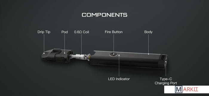Комплектация - сеточный испаритель 0.6 Ом- спиральный испаритель 1.2 Ом- кабель для зарядки- документация