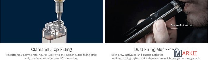 - картридж 2 мл с испарителем 0.8 Ом- картридж 2 мл с испарителем 1.2 Ом- кабель для зарядки- документация |