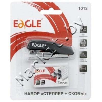 Степлер Eagle 1012 со скобами, скобы №10, 10 л., 70 мм, черный + скобы №10 (500 шт.) Код: 33263