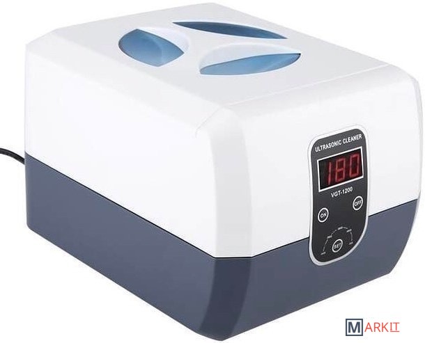 Мойка ультразвуковая VGT-1200 - прибор имеющий влагозащищенный изолированный корпус. Дополнительно мойка оснащена цифровым таймером на 5 режимов с функцией памяти. Крышка оснащена синим светодиодом. Антистатическое исполнение. Цифровой индикатор отображает мощность и время работы.Ультразвуковая мойка имеет большой резервуар объемом 1.3 л, который позволяет одновременно обрабатывать большое количество инструментов. Сам резервуар выполнен из нержавеющей стали.Ультразвуковая частота 40000 Гц.Мойка из нержавеющей стали SUS304.5 циклов с цифровым отображением времени 90, 180, 280, 380 и 480 секунд. Внешний размер (ДxШxВ): 228 x 183 x 158 мм. Размер бака (ДxШxВ): 175 x 145 x 70 мм. Вес 1.75 кг.