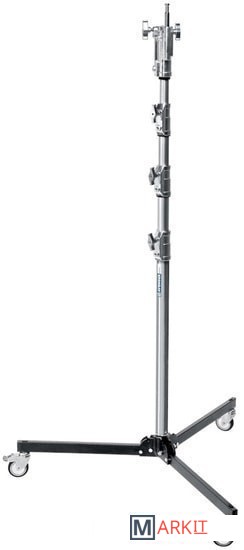 Стойка на колесах Avenger с 4 алюминиевыми секциями и 3 фиксаторами, а также стальными ногами и центральной колонной. Способна выдержать нагрузку до 20 кг, максимальная рабочая высота - 3.4 м. Стойка снабжена колесами, ее ноги складываются для удобства транспортировки.