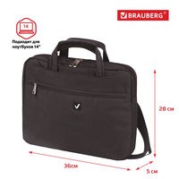 Компактная, легкая сумка в лаконичном дизайне, классического черного цвета. Специальное отделение для планшета и ноутбука с диагональю экрана до 14", три вместительных кармана для мелочей, регулируемый съемный плечевой ремень с резиновой накладкой.Сумка выполнена из современного, износостойкого и качественного материала — полиэстера, имеет утолщенные стенки по периметру, для лучшей защиты ноутбука от случайных ударов и царапин, а также от пыли и влаги.Сумка с верхней загрузкой («топ-лоадер»).Мягкое отделение для ноутбука снабжено лентой на липучке для фиксации устройства. Внутренний размер отделения для планшета и ноутбука (ВхШхГ) — 35х27х3,5 см.Два кармана быстрого доступа на передней и задней стенке и плюс карман на молнии помогут удобно разместить все необходимые аксессуары и документы.Подкладка выполнена из прочной ткани в светлых тонах что обеспечивает удобную эксплуатацию изделия.Используется прочная металлическая фурнитура. Двойная застежка «молния» для быстрого доступа к устройству.Регулируемый съемный плечевой ремень с резиновой накладкой обеспечивает удобную эксплуатацию.Ручки для транспортировки сумки в руках имеет надежное крепление.