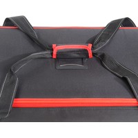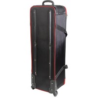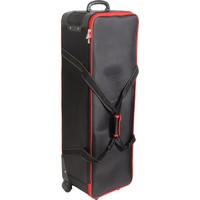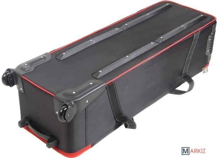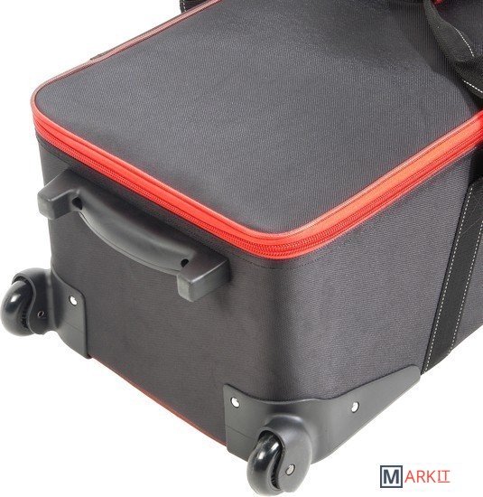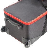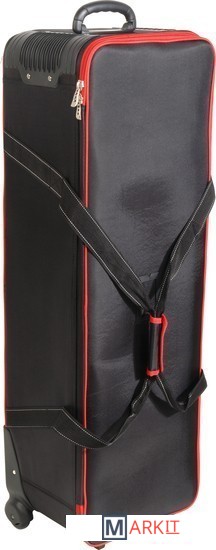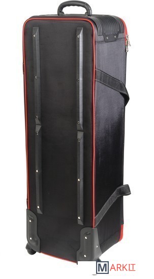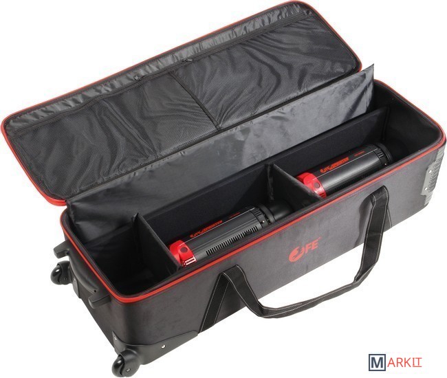 Falcon Eyes СС-12 – вместительная сумка для перевозки студийного оборудования. Содержимое сумки оберегают прочный каркас – монолитный полимерный короб со стенками, жесткое дно и амортизирующая внутренняя отделка.Внешний габаритный размер (с колесами) 109х35х27 см, внутренний размер 101х31х26 см.Сумка выполнена из полиэстера: ткань Oxford отличается высокой прочностью (плотность 1680 D) и влагонепроницаемостью благодаря полиуретановой пропитке.Удобно и компактно разместить вспышки, стойки и аксессуары помогают перегородки с креплением-липучками, зафиксировать оборудование можно ремнями-стяжками. Закрывается сумка на застежку-молнию с двумя металлическими замками.Для аксессуаров можно использовать два кармана длиной по 48 см с застежкой-молнией, которые находятся на внутренней стороне крышки.Переносить и переставлять сумку помогают прочные текстильные ручки, которые можно соединить между собой стяжкой на липучке. Везти сумку удобно за эргономичную пластиковую ручку.Плавный ход обеспечивают два колеса на стальных осях, защищенные кожухами.Сумку можно смело ставить на грязную поверхность, так как на дне есть две планки-подставки. В вертикальном положении она устойчиво опирается на ножку и колеса.На лицевой стороне крышки предусмотрено прозрачное окошко для карточки с координатами владельца на случай потери сумки.