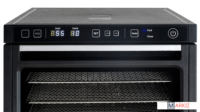 Два вентилятора для равномерного сушкиЦифровой таймер 1 - 99 часовСветодиодный дисплейРазмер стола: 34 x 38,5 см.Защита от перегреваНапряжение: 220 - 240 В