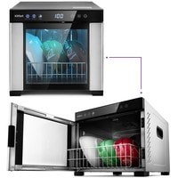 Помимо сушки в КТ-1916 можно сушить и одновременно дезинфицировать посуду ультрафиолетовым излучением с помощью УФ-лампы. Прибор обеспечит стерильность и сушку вашей посуды. В комплекте предусмотрена специальная корзина для посуды.
