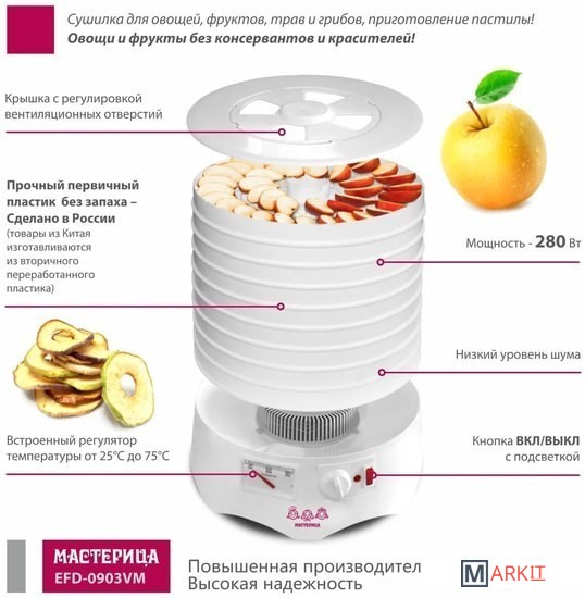 Markit » Сушилки для овощей и фруктов » Сушилка для овощей и фруктов Мастерица EFD-0903VM