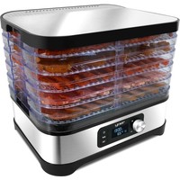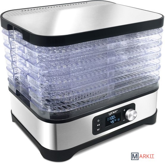 Мощность: 450 Вт, 5 прозрачных двусторонних подставок, регулируемая температура: 35-70°C, противоскользящее основание.Электронная панель управления со светодиодным дисплеем.Верхняя крышка из нержавеющей стали INOXПоверхность сушки: 4000 см²Полки можно мыть в посудомоечной машине.Корпус: матовая нержавеющая сталь INOX, полимерОдна дополнительная полка увеличивает емкость на 2,4 л.Защита от перегрева - автоматически отключает дегидратор, если есть риск перегрева и повреждения. Выдвинутое положение: высота прибора 27,1 см (расстояние 2,7 см) - использовать при обезвоживании.В сложенном виде: высота устройства 21,5 см (расстояние 1,5 см) - использовать для хранения24-часовой таймер - вы можете установить время, через которое устройство должно выключиться, чтобы вам не приходилось следить за его работой.8-ми ступенчатая регулировка температуры в диапазоне 35-70°C - позволяет вместить любой вид сушеных продуктов.Длина шнура питания: 93,5 смПольская вилка питания: 220-240 В 50/60 Гц