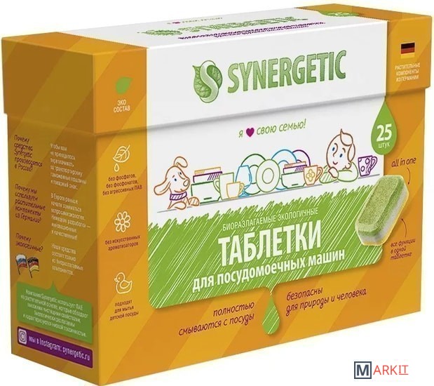 Markit » Средства для посудомоечных машин » Таблетки для посудомоечной машины Synergetic Биоразлагаемые бесфосфатные (25 шт)