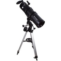 Телескоп Bresser Pollux 150/1400 EQ3 – это рефлектор Ньютона, оснащенный встроенной линзой Барлоу. Поэтому при его большом фокусном расстоянии (1400 мм) длина трубы остается достаточно короткой и удобной для транспортировки. Экваториальная монтировка EQ3 позволяет быстро навести телескоп на интересующий небесный объект и сопровождать его суточное движение вращением ручки тонких движений. Для удобства поиска объектов есть искатель с красной точкой.