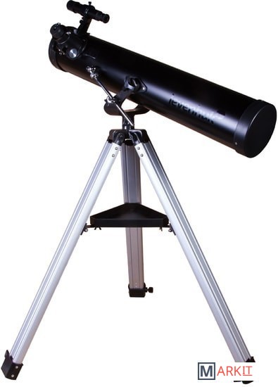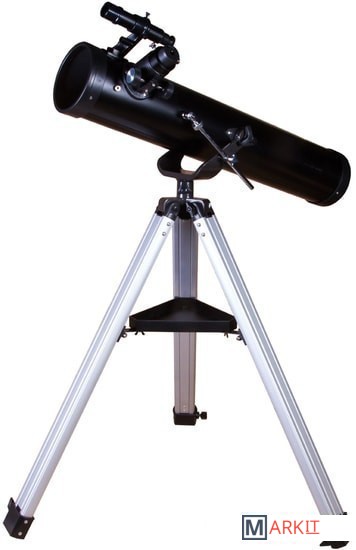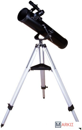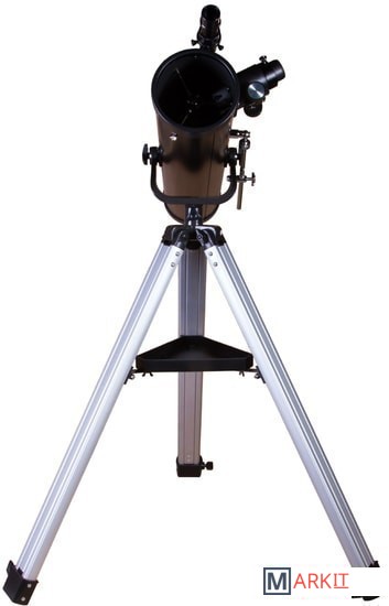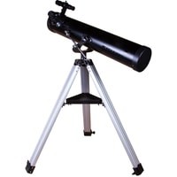 Levenhuk Skyline BASE 100S создан для изучения космических глубин! Его оптических возможностей хватит, чтобы увидеть все объекты каталога Мессье – туманности, двойные звезды, галактики, шаровые и рассеянные скопления и многое другое. Покажет он и ярчайшие объекты каталога NGC, а также планеты Солнечной системы и Луну. Это универсальный телескоп, но дальний космос выглядит в нем особенно хорошо. Рефлектор ориентирован на начинающих астрономов, прост в управлении и комплектуется всеми необходимыми аксессуарами.Чтобы навести телескоп на интересующий вас объект, не нужно читать инструкцию или учебники. Азимутальная монтировка не сложнее обычного штатива. Нужно лишь навести оптическую трубу на нужный участок неба, свериться с картинкой в 5-кратном оптическом искателе и отрегулировать резкость – красоты космоса уже перед вами! Управлять телескопом сможет даже ребенок, настолько это просто.Устойчивость телескопу придает классическая алюминиевая тренога. Она легкая, прочная и надежная. Устанавливать ее можно даже на неровные поверхности – каждая ее ножка регулируется по высоте независимо от других. Есть лоток для аксессуаров, на котором можно размещать окуляры, компас, карты звездного неба и другие небольшие предметы. Два окуляра уже включены в комплект поставки. С одним телескоп дает небольшое увеличение (35х), с другим – значительное (175х).