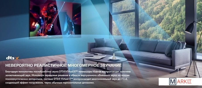 Технология оптимизации изображения с помощью искусственного интеллекта в сочетании с интеллектуальным распознаванием сценариев в режиме реального времени позволяет мгновенно захватывать каждый кадр и сопоставлять с облачной базой данных, а затем автоматически распознавать и оптимизировать настройки качества изображения в соответствии с конкретными требованиями изображаемой сцены.Полноматричная подсветка Direct Full Array в LED- телевизорах подсвечивает экран по всей диагонали. Это позволяет добиться равномерной яркости и значительно снизить протечку самой подсветки на ЖК-панель.Технология Dolby Vision — передовой формат HDR на базе технологий киноиндустрии. Она делает ваши развлечения более яркими и впечатляющими. Четкое, реалистичное изображение, которое позволит забыть, что вы смотрите телевизор.Благодаря технологиям постобработки звука DTS Virtual:X телевизоры Hisense воспроизводят поистине захватывающий звук. Используя передовые решения в области виртуального объемного звука на основе психоакустических алгоритмов, система DTS Virtual:X воспроизводит многоканальный звук до 7.1.4, создающий эффект погружения, через обычные горизонтальные динамики.Беспроводное соединение и Bluetooth позволяют транслировать любимые фильмы, музыку и многое другое на телевизор.Решение Smooth Motion на панелях 60 Гц объединяет две технологии: MEMO и динамическое подавление шума 3D Noise Reduction, которые создают переходные кадры и вставляют их между исходными. Это позволяет устранить дрожание и размывание изображения, а быстрые движения выглядят более плавными и четкими.Вместо обычного увеличения разрешения алгоритм Hisense UHD Al Upscaler вычисляет цвет соседних пикселей и автоматически вставляет пиксели нужного цвета кадр за кадром, создавая более детальное и четкое изображение. Изображение с разрешением 1080p, обработанное с помощью UHD Al Upscaler, приобретает глубину и детализацию 4K.Пульт дистанционного управления с голосовым управлением и минималистичными изящными кнопками со встроенной подсветкой позволяет в полной мере насладиться вечерним кинопросмотром.