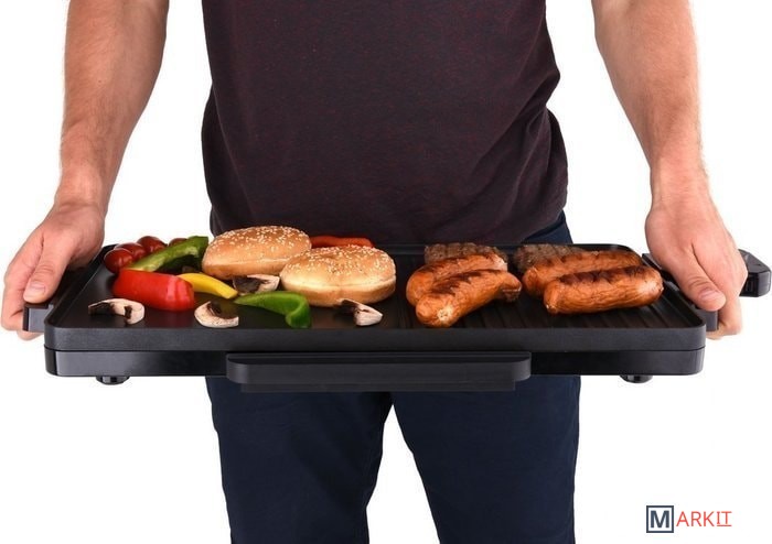 антипригарное покрытие, которое легко чиститьдва типа плиты - зубчатая и плоскаяконтроль температурыненагревающиеся ручки для переноски грилянебольшая высота устройства облегчит хранениеподдон для сбора жиракабель: 80 смболее высокий край облегчает поддержание чистоты в зоне гриля