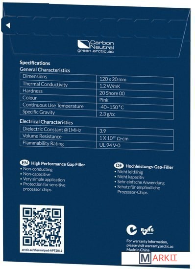 Markit » Системы охлаждения » Термопрокладка Arctic Thermal Pad ACTPD00024A (120x20x1 мм)