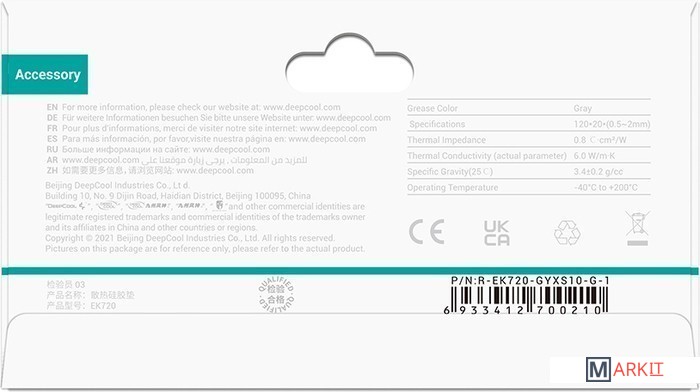 Markit » Системы охлаждения » Термопрокладка DeepCool EK720-XS-1.0 120x20x1
