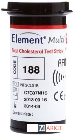 С помощью анализатора Элемент Мульти возможно проводить не только контроль всех важнейших показателей липидограммы одновременно, с использованием одной тест-полоски, но и при необходимости, провести исследование одного из них. Такая потребность, например, может возникнуть в том случае, если только один из пунктов липидограммы не соответствует норме и важен мониторинг именно этого показателя, а значит, можно не тратить средства на липидную панель в целом.Компания Infopia предлагает тест-полоски для определения общего холестерина в цельной капиллярной крови.С помощью тест-полосок Элемент Мульти можно определить уровень общего холестерина в широком диапазоне - от 2,59 ммоль/л до 10,36 ммоль/л, что полностью удовлетворяет как запросы по самоконтролю, так и потребности медицинских лабораторий.