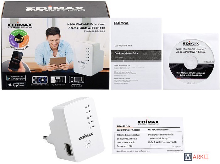 Markit » Беспроводные точки доступа и усилители Wi-Fi » Точка доступа Edimax N300 Mini (EW-7438RPn Mini)