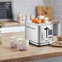 Тостер оснащён функцией памяти на 4 настройки (ячейки памяти) поджарки тостов. Длина шнура питания: 0.75 м.