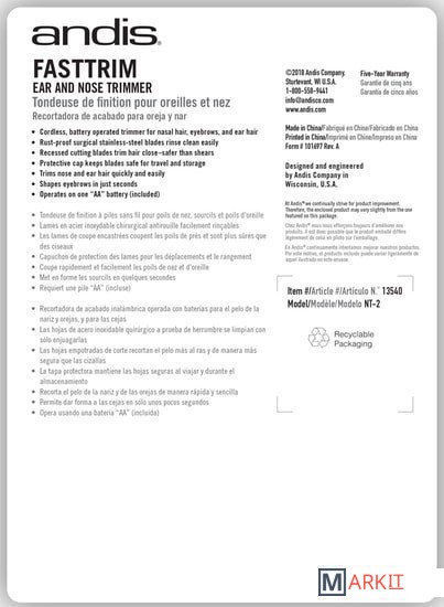 Markit » Машинки для стрижки волос » Триммер для носа и ушей Andis NT-2