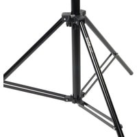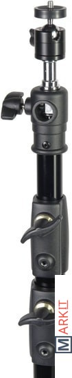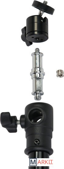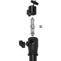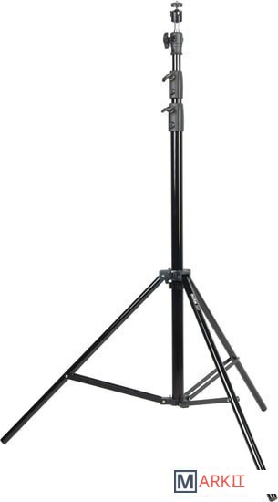 Godox 290F - стойка-тренога с телескопической колонной, пружинной амортизацией и шаровой головкой для установки цифровых камер. Стойка используется во время работы в студии, выездных фото или видеосъемках для установки оборудования весом до 5 кг. Максимальная рабочая высота составляет 286 см, размер в сложенном виде 104 см, нагрузка до 5 кг.Съемный стальной шпигот-адаптер 5/8” с винтовой резьбой на концах 1/4” и 3/8” может устанавливаться как вертикально, так и горизонтально, фиксируясь винтом.Комплектная шаровая головка, устанавливаемая на шпигот, имеет винт фиксации угла поворота шара. Установленное оборудование может поворачиваться на 360° и наклоняться вперед в пределах 90°.4 телескопические секции увеличенным диаметром 35, 30, 25 и 22 мм надежно фиксируются по высоте, благодаря стальным винтовым зажимам, которые вкручиваются в металлические вкладыши на зажимной муфте секции. Винтовые зажимы оснащены крупными ручками из прочного ABS-пластика.Алюминиевая труба, используемая для изготовления секций, проходит калибровку на всех этапах производства, благодаря чему телескопические секции имеют плавный ход и равномерное скольжение друг относительно друга, а также защищены от заклинивания.Пружинный амортизатор предохраняет установленное оборудование от повреждений в случае, когда ассистент резко ослабил зажимные винты и стойка резко сложилась.