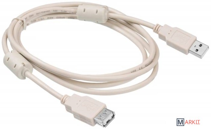 Стандартный кабель-удлинитель для устройств USB 2.0. Может быть использован для увеличения длины кабелей клавиатуры, мыши, Web-камеры, картридера и прочих устройств.