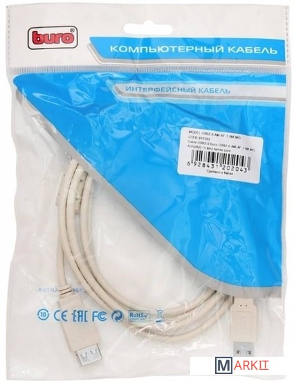 Markit » Кабели, адаптеры, разветвители » Удлинитель Buro USB2.0-AM-AF-1.8M-MG