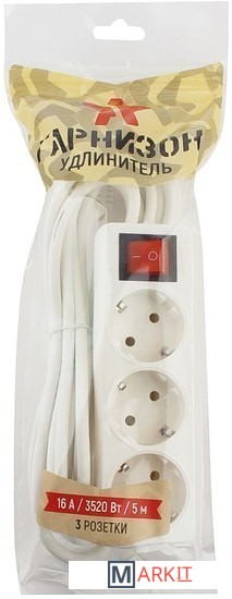 Markit » Стабилизаторы, сетевые фильтры, удлинители » Удлинитель Гарнизон 3 розетки, белый, 5 м (ELB-G3-W-5)