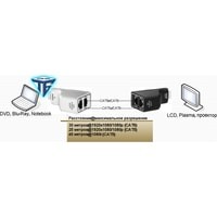 Передача HDMI сигнала без дополнительного питания, по двум кабелям витой пары. Автоматическая настройка, выравнивание и усиление сигнала.
