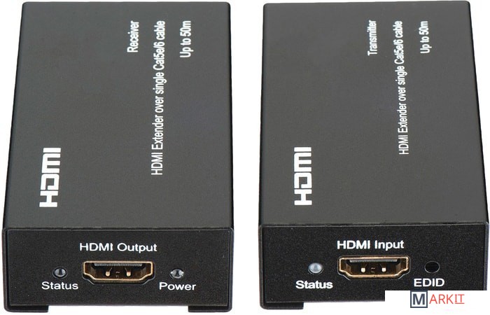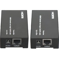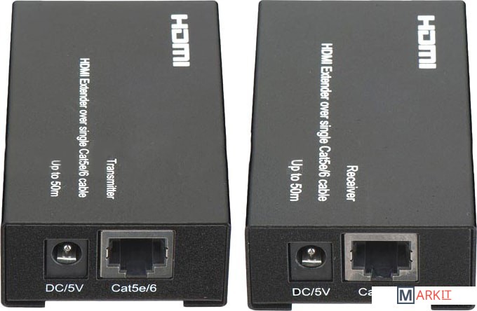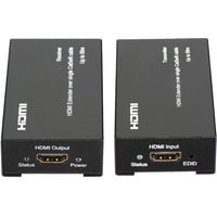 Комплект для передачи HDMI по одному кабелю витой пары CAT5e/6 до 50м. Разрешение до 1080p, 36 бит (Deep Color). Поддержка 3D и HDCP. Скорость передачи данных до 6,75Гбит/с. Функция копирования EDID. Передатчик: Вх. - HDMI(A)/Роз.2,1х5мм(DC5V). Вых. - RJ45. Приёмник: Вх. - RJ45/Роз.2,1х5мм(DC5V). Вых. - HDMI(A). В комплекте БП DC5V(1А) - 2шт. Размеры каждого устройства (ШxВxГ): 48x25x83мм.Рабочая температура: -5…+35°С.