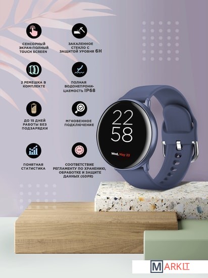 - Часы;- Зарядное устройство;- 2 ремешка - силиконовый и кожаный.