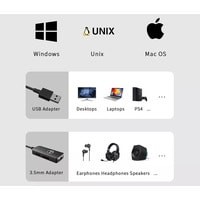 Основные особенности:- совмещенный небалансный разъем 3.5 мм, для подключения акустических систем, наушников или микрофонов- поддержка виртуального объемного звука 7.1- возможность настройки при помощи специального программного обеспечения- приглушение микрофона (mute)- регулировка громкости на корпусе- длина кабеля 1.2 мСовместим с Windows, MacOS и Linux.