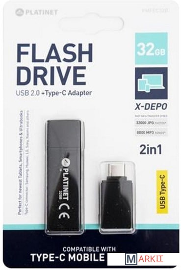 Markit » Флешки USB » USB Flash Platinet X-Depo + Type-C Adapter 32GB (черный)