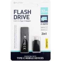 USB Flash Platinet X-Depo + Type-C Adapter 32GB (черный) Код: 99088