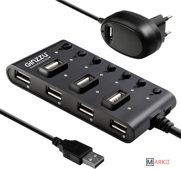 Markit » USB-хабы и док-станции » USB-хаб Ginzzu GR-487UAB
