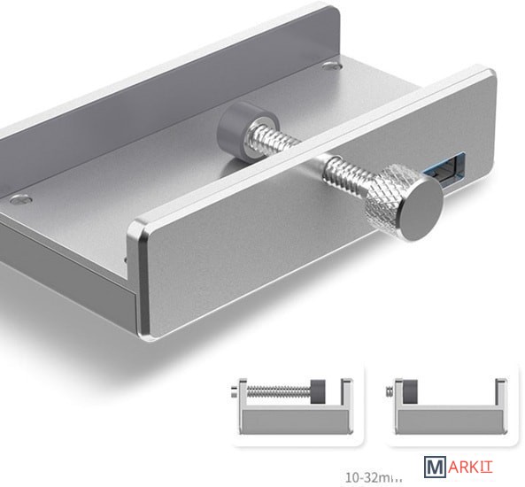 USB-хаб выполнен в стиле MAC. Концентратор оборудован специальной системой крепления на монитор ПК. Девайс легко устанавливается и фиксируется на мониторе или другом месте. Допустимые размеры монитора на который монтируется концентратор от 10 до 32 мм.
